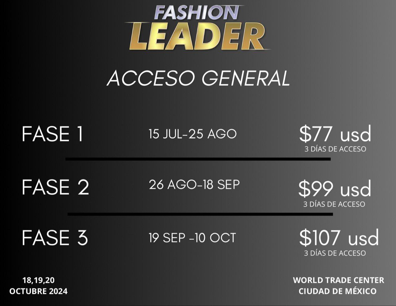 Si quieres destacar en el Fashion Leader 005 con tus diseños en la pasarela exclusiva o sumarte a una pasarela colectiva, dale clic abaja para reservar tu participación.