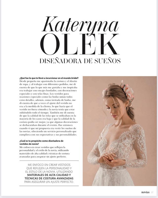 Soy Kateryna Olek, diseñadora de modas en los vestidos de novia y de alta costura.