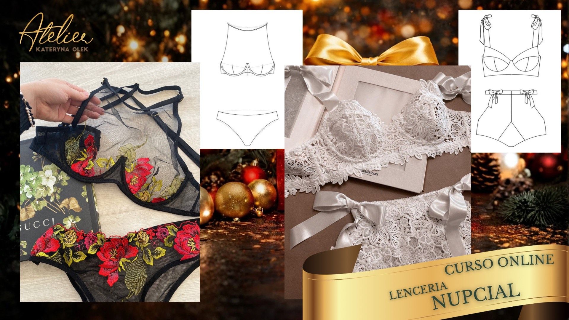 A lo largo del curso realizarás dos conjuntos completos de lencería, pensados para elevar tu propuesta creativa y profesional.